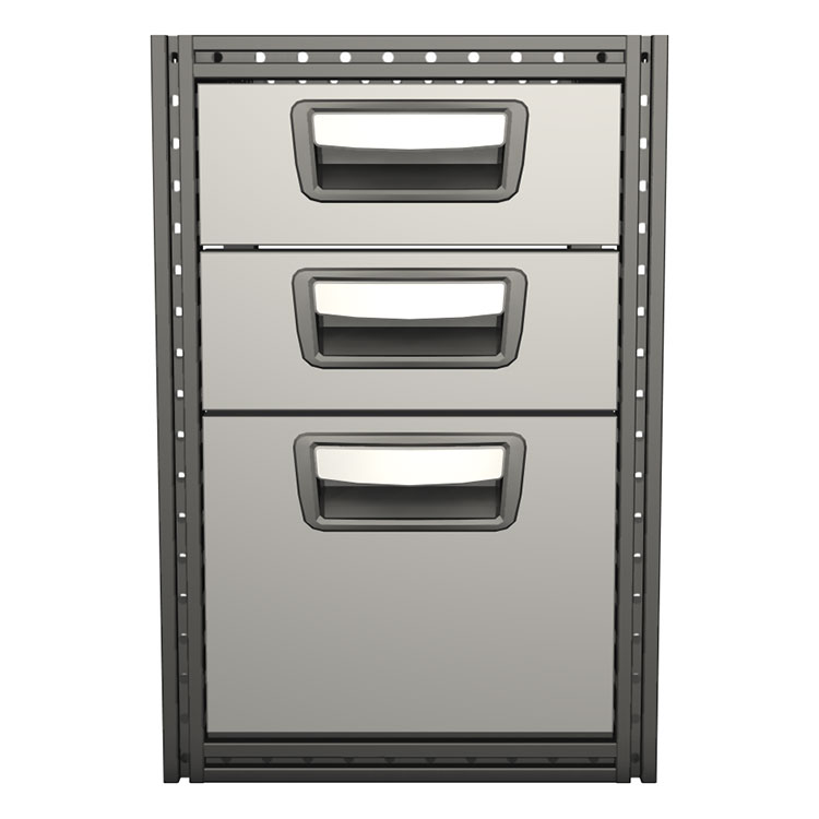 Die Schubkastenmodule sind modular in Tiefe, Breite und Höhe. Sie lassen sich einfach mit anderen Produkten im Sortiment kombinieren. Im Gestell ist eine T-Nut integriert, die sich zur Lastensicherung, Zubehörbefestigung sowie zur flexiblen Oberflächenmontage verwenden lässt. Standardmäßig sind unsere Schubkästen mit Kugellagerführungen ausgestattet. Die Schubkästen sind vollständig herausziehbar und mit Stoppern ausgestattet. Zur Gewichtsoptimierung sind Abdeckseiten und Lochbleche optional.