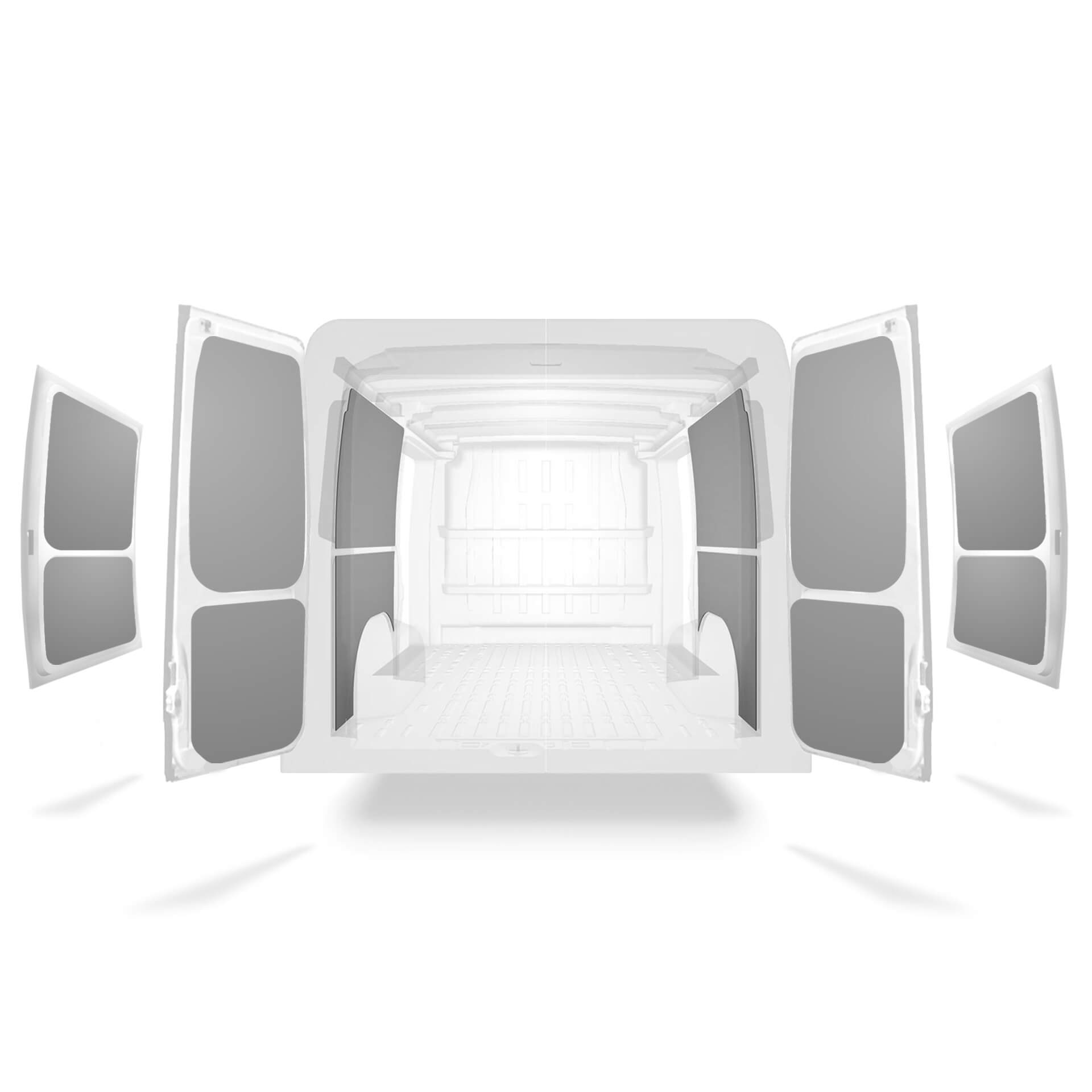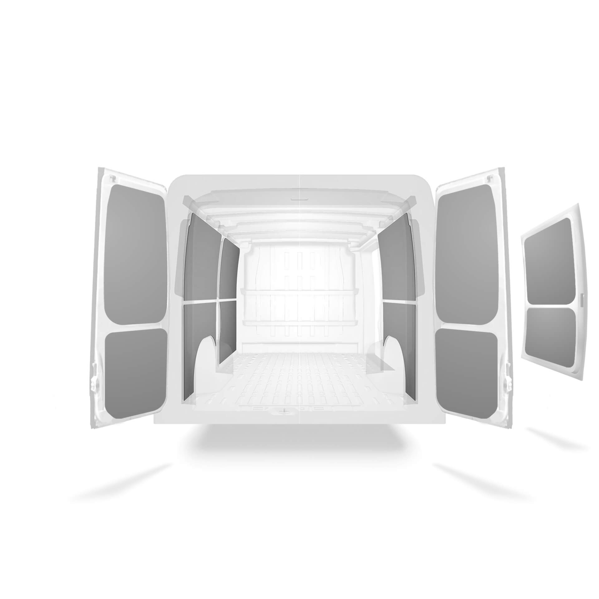 Beachten Sie außerdem, dass das in den Sets enthaltene Montagematerial für die Montage an der Karosserie vorgesehen ist. Die Halterungen für die beschädigungsfreie Montage an Boden und Wandschienen werden separat geliefert.
