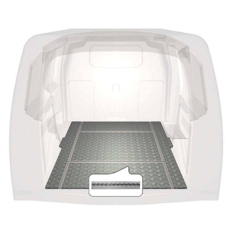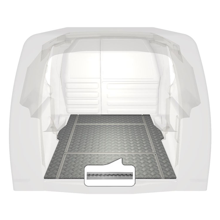 Unsere leichten und robusten Fahrzeugböden mit Querschienen sind für verschiedene Fahrzeugmodelle erhältlich. Sie werden mit einem rutschfesten Trittblech aus Aluminium und Schienen (längs und quer) für eine schnelle und sichere Montage von Regalsystemen und anderem Zubehör geliefert. Für die Bodenverlegung ist kein Bohren erforderlich, sondern lediglich ein Hochleistungsklebstoff. Dadurch wird ein stärkerer Halt als mit Schrauben und Muttern erzielt. Zudem mindert dieses Verfahren nicht den Restwert Ihres Fahrzeugs.