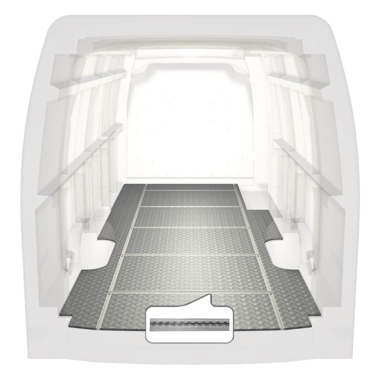 Unsere leichten und robusten Fahrzeugböden mit Querschienen sind für verschiedene Fahrzeugmodelle erhältlich. Sie werden mit einem rutschfesten Trittblech aus Aluminium und Schienen (längs und quer) für eine schnelle und sichere Montage von Regalsystemen und anderem Zubehör geliefert. Für die Bodenverlegung ist kein Bohren erforderlich, sondern lediglich ein Hochleistungsklebstoff. Dadurch wird ein stärkerer Halt als mit Schrauben und Muttern erzielt. Zudem mindert dieses Verfahren nicht den Restwert Ihres Fahrzeugs.