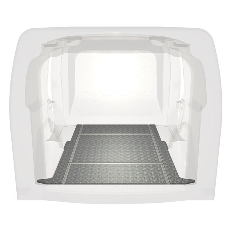 Unsere leichten und robusten Fahrzeugböden mit Querschienen sind für verschiedene Fahrzeugmodelle erhältlich. Sie werden mit einem rutschfesten Trittblech aus Aluminium und Schienen (längs und quer) für eine schnelle und sichere Montage von Regalsystemen und anderem Zubehör geliefert. Für die Bodenverlegung ist kein Bohren erforderlich, sondern lediglich ein Hochleistungsklebstoff. Dadurch wird ein stärkerer Halt als mit Schrauben und Muttern erzielt. Zudem mindert dieses Verfahren nicht den Restwert Ihres Fahrzeugs.