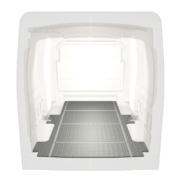 Unsere leichten und robusten Fahrzeugböden mit Querschienen sind für verschiedene Fahrzeugmodelle erhältlich. Sie werden mit einem rutschfesten Trittblech aus Aluminium und Schienen (längs und quer) für eine schnelle und sichere Montage von Regalsystemen und anderem Zubehör geliefert. Für die Bodenverlegung ist kein Bohren erforderlich, sondern lediglich ein Hochleistungsklebstoff. Dadurch wird ein stärkerer Halt als mit Schrauben und Muttern erzielt. Zudem mindert dieses Verfahren nicht den Restwert Ihres Fahrzeugs.
