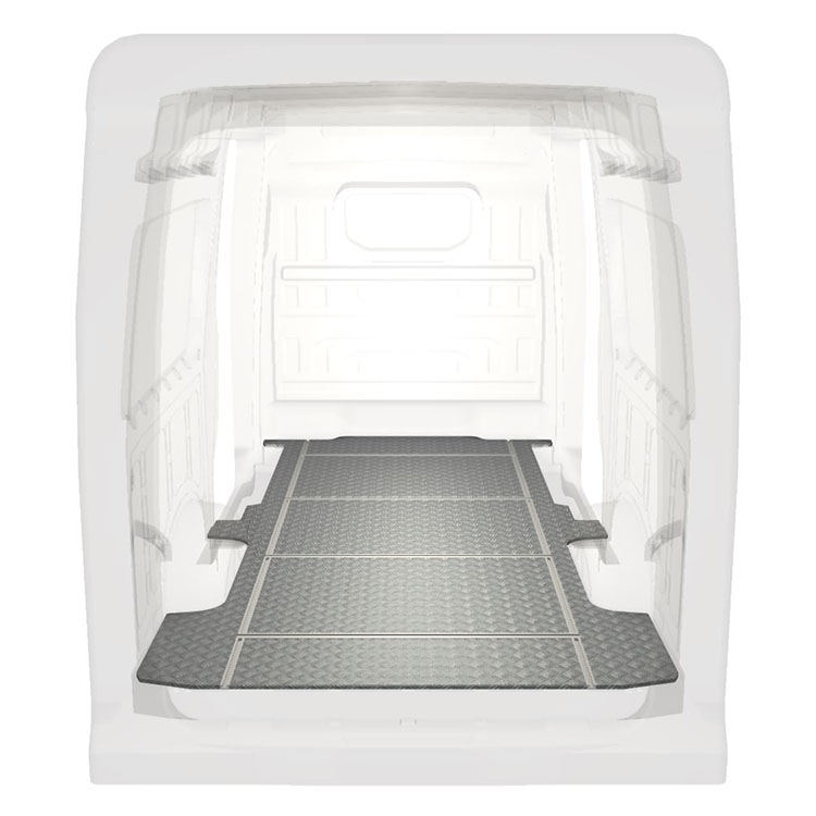Unsere leichten und robusten Fahrzeugböden mit Querschienen sind für verschiedene Fahrzeugmodelle erhältlich. Sie werden mit einem rutschfesten Trittblech aus Aluminium und Schienen (längs und quer) für eine schnelle und sichere Montage von Regalsystemen und anderem Zubehör geliefert. Für die Bodenverlegung ist kein Bohren erforderlich, sondern lediglich ein Hochleistungsklebstoff. Dadurch wird ein stärkerer Halt als mit Schrauben und Muttern erzielt. Zudem mindert dieses Verfahren nicht den Restwert Ihres Fahrzeugs.