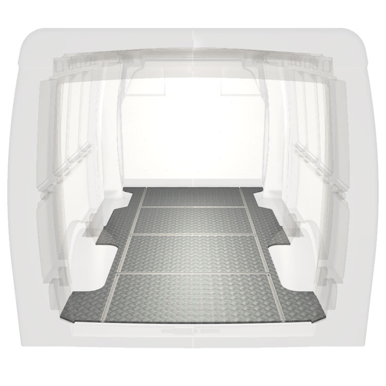 Unsere leichten und robusten Fahrzeugböden mit Querschienen sind für verschiedene Fahrzeugmodelle erhältlich. Sie werden mit einem rutschfesten Trittblech aus Aluminium und Schienen (längs und quer) für eine schnelle und sichere Montage von Regalsystemen und anderem Zubehör geliefert. Für die Bodenverlegung ist kein Bohren erforderlich, sondern lediglich ein Hochleistungsklebstoff. Dadurch wird ein stärkerer Halt als mit Schrauben und Muttern erzielt. Zudem mindert dieses Verfahren nicht den Restwert Ihres Fahrzeugs.