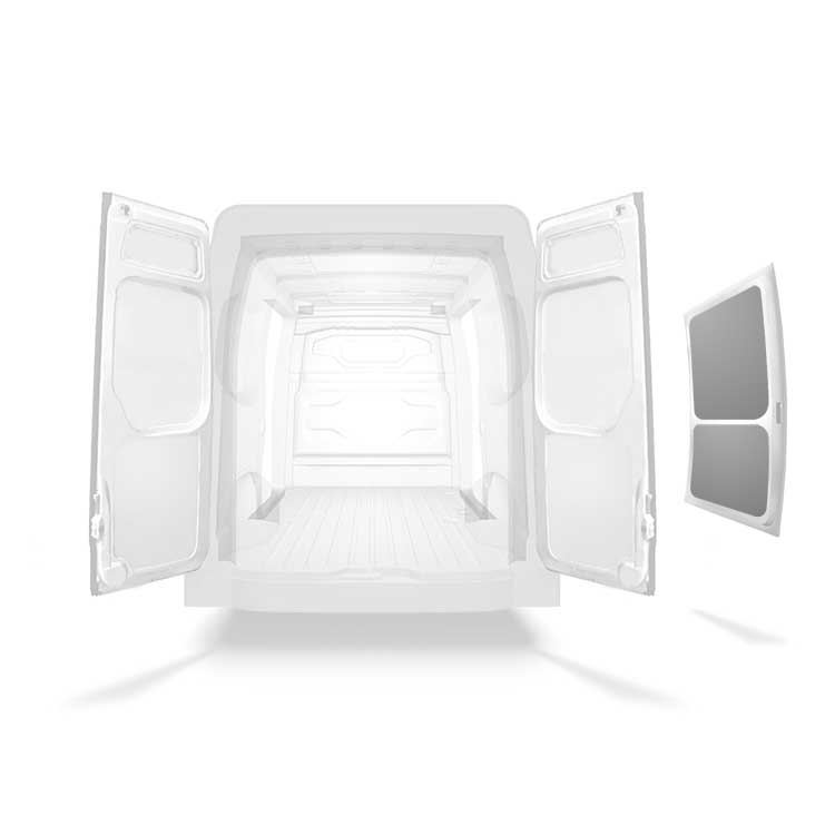 Unsere zugeschnittenen Seitentürverkleidungen sind für verschiedene Türdesigns und -konfigurationen für zahlreiche Nutzfahrzeuge erhältlich. Die Türverkleidungen sind leicht und erwecken im Fahrzeuginneren einen professionellen Eindruck. Sie sind als Vollverkleidungen für die gesamte Tür oder als Teilverkleidungen erhältlich, die zwischen die Streben einer Tür passen. Die Türverkleidungen können leicht mit Hochleistungsklebstoff montiert werden, ohne das Fahrzeug zu beschädigen. Jedoch ist auch die herkömmliche Montage mit Schrauben möglich.