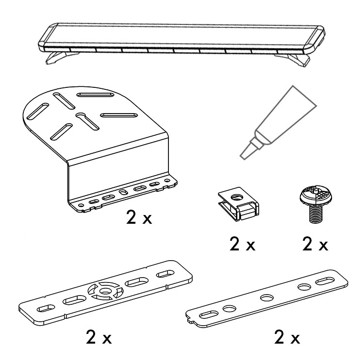 Beachten Sie außerdem, dass das in den Sets enthaltene Montagematerial für die Montage an der Karosserie vorgesehen ist. Die Halterungen für die beschädigungsfreie Montage an Boden und Wandschienen werden separat geliefert.
