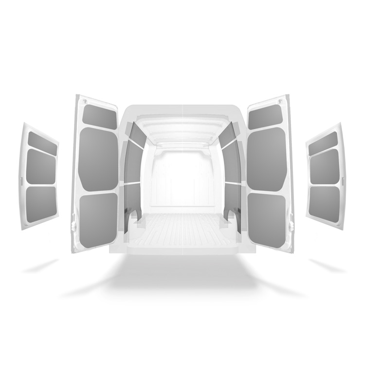 Beachten Sie außerdem, dass das in den Sets enthaltene Montagematerial für die Montage an der Karosserie vorgesehen ist. Die Halterungen für die beschädigungsfreie Montage an Boden und Wandschienen werden separat geliefert.