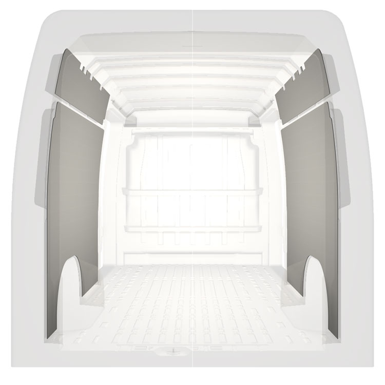 Beachten Sie außerdem, dass das in den Sets enthaltene Montagematerial für die Montage an der Karosserie vorgesehen ist. Die Halterungen für die beschädigungsfreie Montage an Boden und Wandschienen werden separat geliefert.