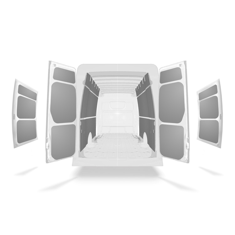 Beachten Sie außerdem, dass das in den Sets enthaltene Montagematerial für die Montage an der Karosserie vorgesehen ist. Die Halterungen für die beschädigungsfreie Montage an Boden und Wandschienen werden separat geliefert.