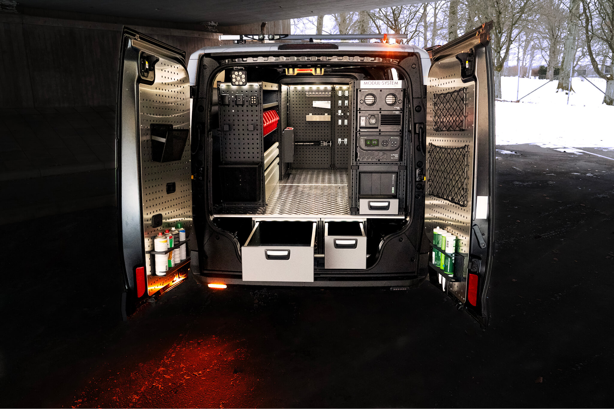 Unsere modularen Fahrzeugeinrichtungen sind passgenau für das Fahrzeug konzipiert und helfen Ihnen, den verfügbaren Platz optimal zu nutzen. Werkzeuge und Ausrüstung sind stets übersichtlich, sicher und leicht zugänglich verstaut. Ergänzt durch robuste Bodenbeläge und praktische Dachträger können Sie sich eine komplette, auf Ihren Arbeitsalltag zugeschnittene Ausstattung zusammenstellen.