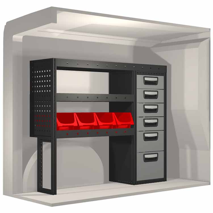 Dieses Einrichtungssystem wurde entworfen, um optimale Passgenauigkeit und bestmögliche Funktionalität und Sicherheit zu gewährleisten. Es ist für den professionellen Gebrauch entwickelt worden, ist flexibel und zur Anwendung in verschiedenen Geschäftsbereichen bestimmt. Universal- und Bodenwinkel sind enthalten.