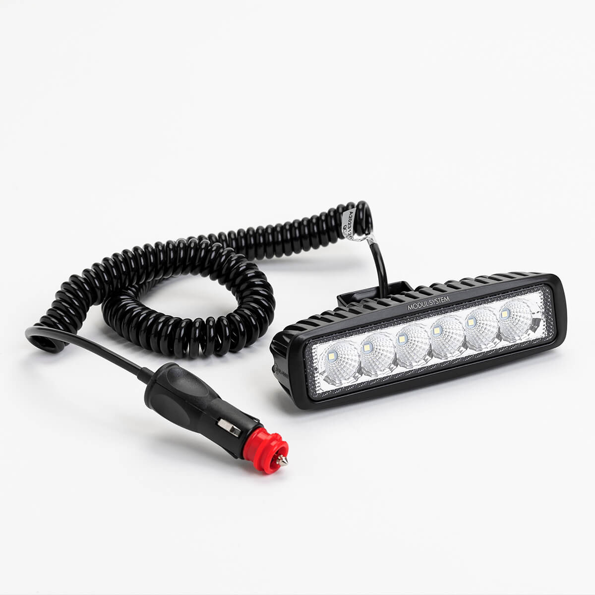 Arbeitslicht mit sechs individuellen weiß Licht LEDs. Sie kommt mit einem vormontierten nicht kratzendem Magnetfuß, und wird von der Zigaretten-Steckdose durch das Spiralkabel gespeist. Dank IP67-Klassifizierung ist das Licht auch für den Außenbereich geeignet. Das Produkt ist E markiert.