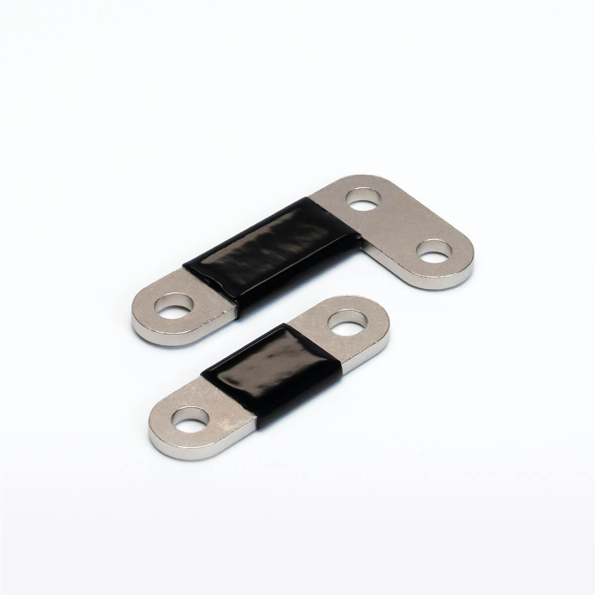 These busbars are designed to supply power from the e-Power unit to the e-Inverter when stacked directly on top. They provide a clean and secure connection between the two units.