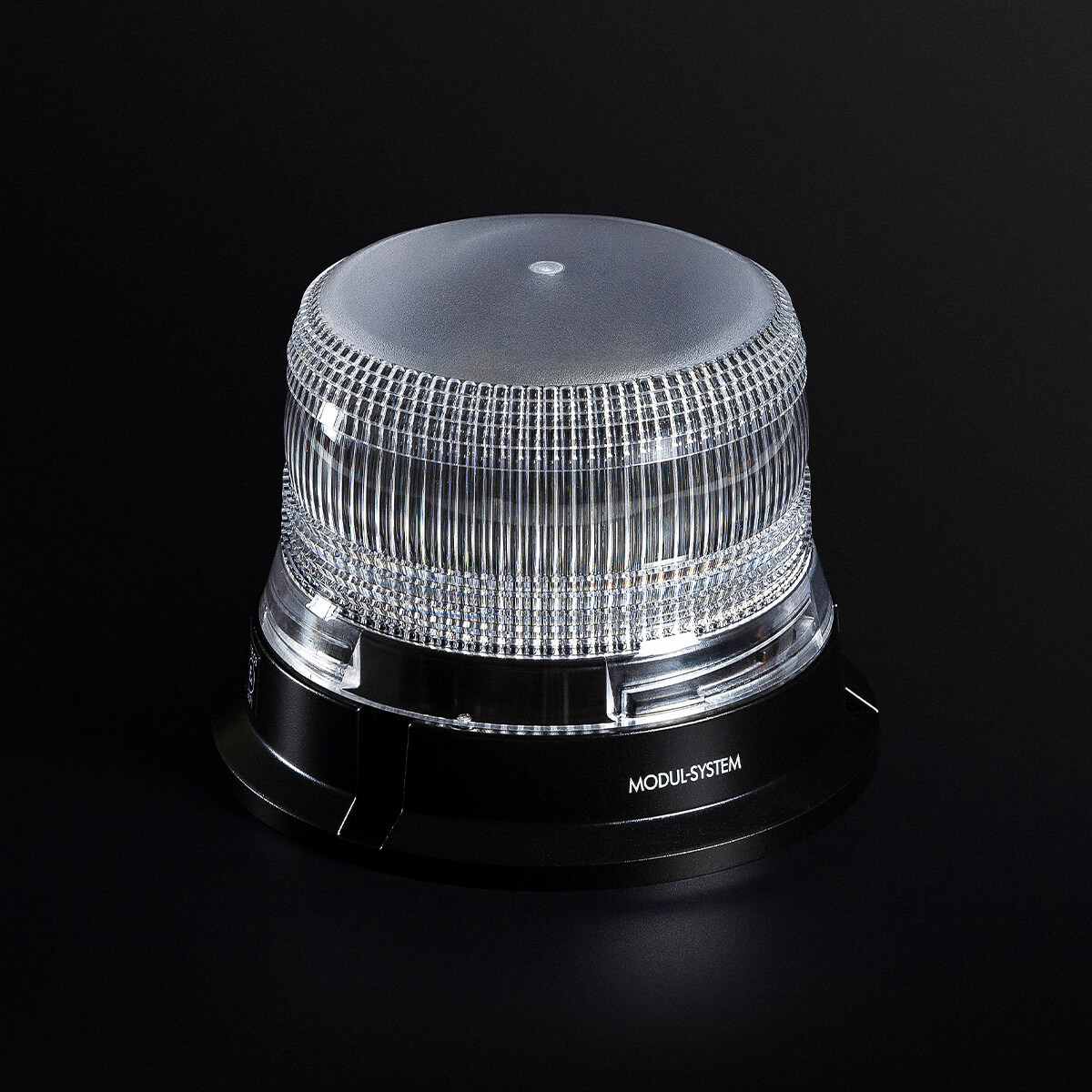 Premium-Rundumleuchte mit Dreipunktbefestigung am Fahrzeugdach. Adapter (separat erhältlich) erleichtern die Einpunktbefestigung oder die Montage am Dachträger.