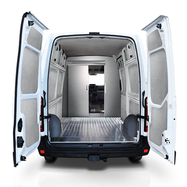 The bulkhead, made from lightweight material, is equipped with a sliding door for quick and easy access to the cargo area from the cabin. The door is centered to create maximal space between the driver and passenger seat, making loading and unloading easier and more efficient.