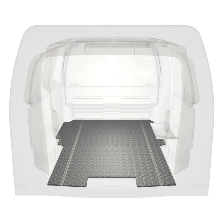 Lightweight and robust extra long floor for Citroën Jumpy / Peugeot Expert / Toyota ProAce with anti-slip aluminum tread plate and cargo rails (longitudinal) for quick and safe installation of racking systems and other accessories.