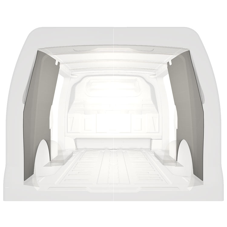 Verkleidungen für Seiten-, Hecktür und Dachhimmel sind separat erhältlich. Das Installationsmaterial wird ebenfalls separat geliefert.