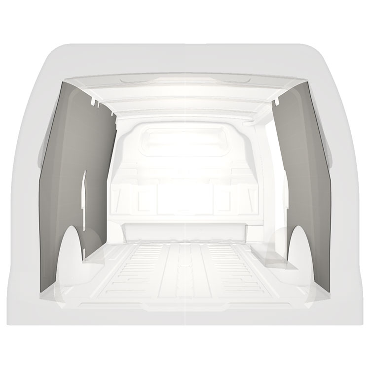 Verkleidungen für Seiten-, Hecktür und Dachhimmel sind separat erhältlich. Das Installationsmaterial wird ebenfalls separat geliefert.