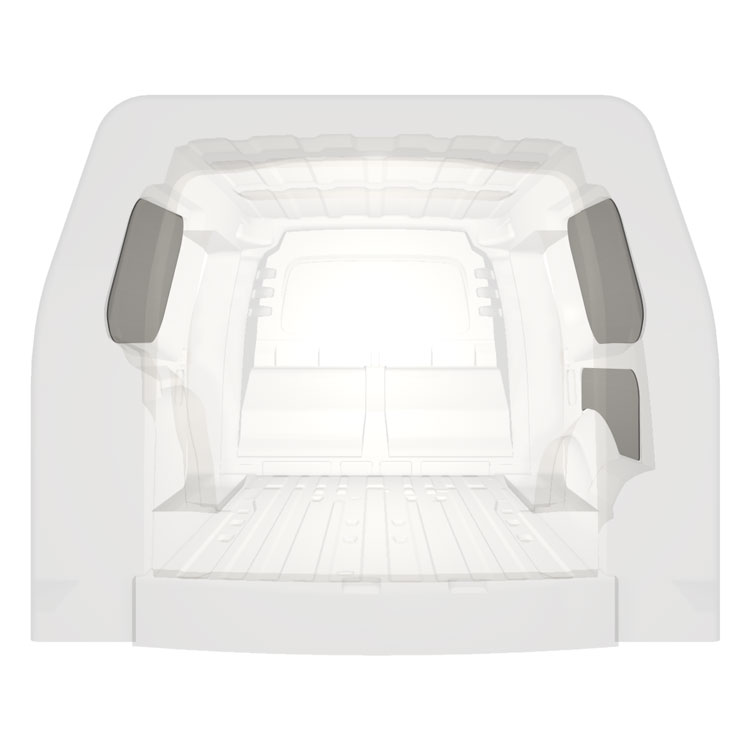 Leichte Innenverkleidung für die Innenwände eines Volkswagen Caddy Cargo Maxi 21- mit beidseitigen Seitentüren. Verkleidungen schaffen ein helles und angenehmes Arbeitsumfeld und sind leicht zu reinigen.