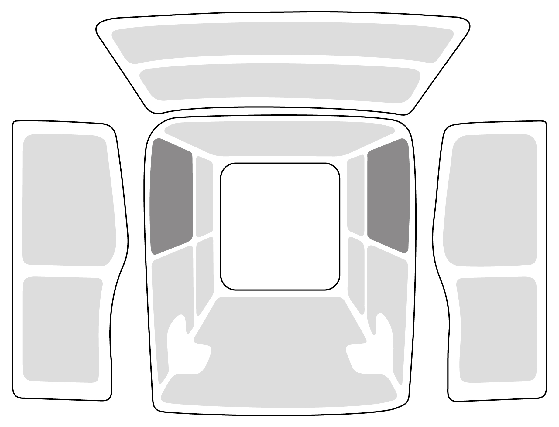 Verkleidungen für Seiten-, Hecktür und Dachhimmel sind separat erhältlich. Das Installationsmaterial wird ebenfalls separat geliefert.