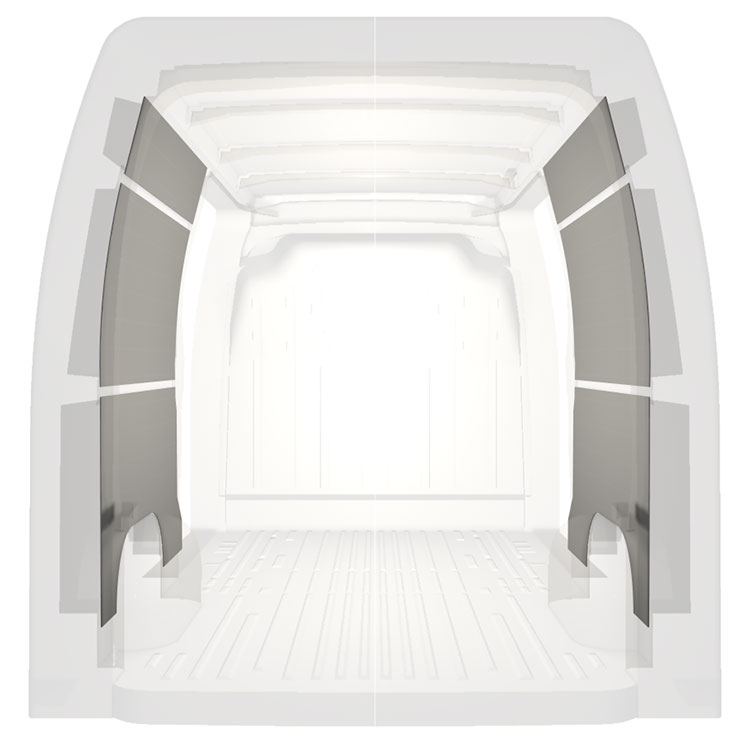 Verkleidungen für Seiten-, Hecktür und Dachhimmel sind separat erhältlich. Das Installationsmaterial wird ebenfalls separat geliefert.