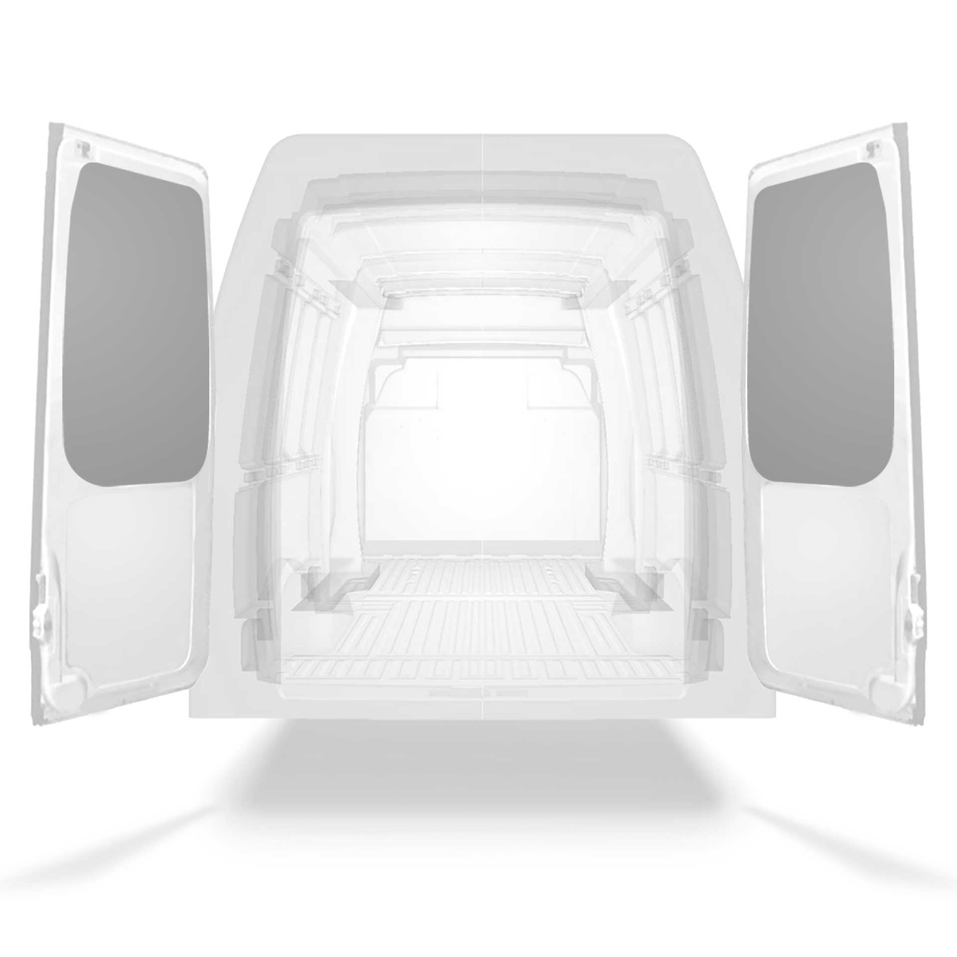 Leichte Verkleidung für den oberen Teil der Hecktür eines Iveco Daily mit Doppeltüren. Die Türverkleidung erweckt einen professionellen Eindruck, schützt Ihr Fahrzeug und ist leicht zu reinigen.
