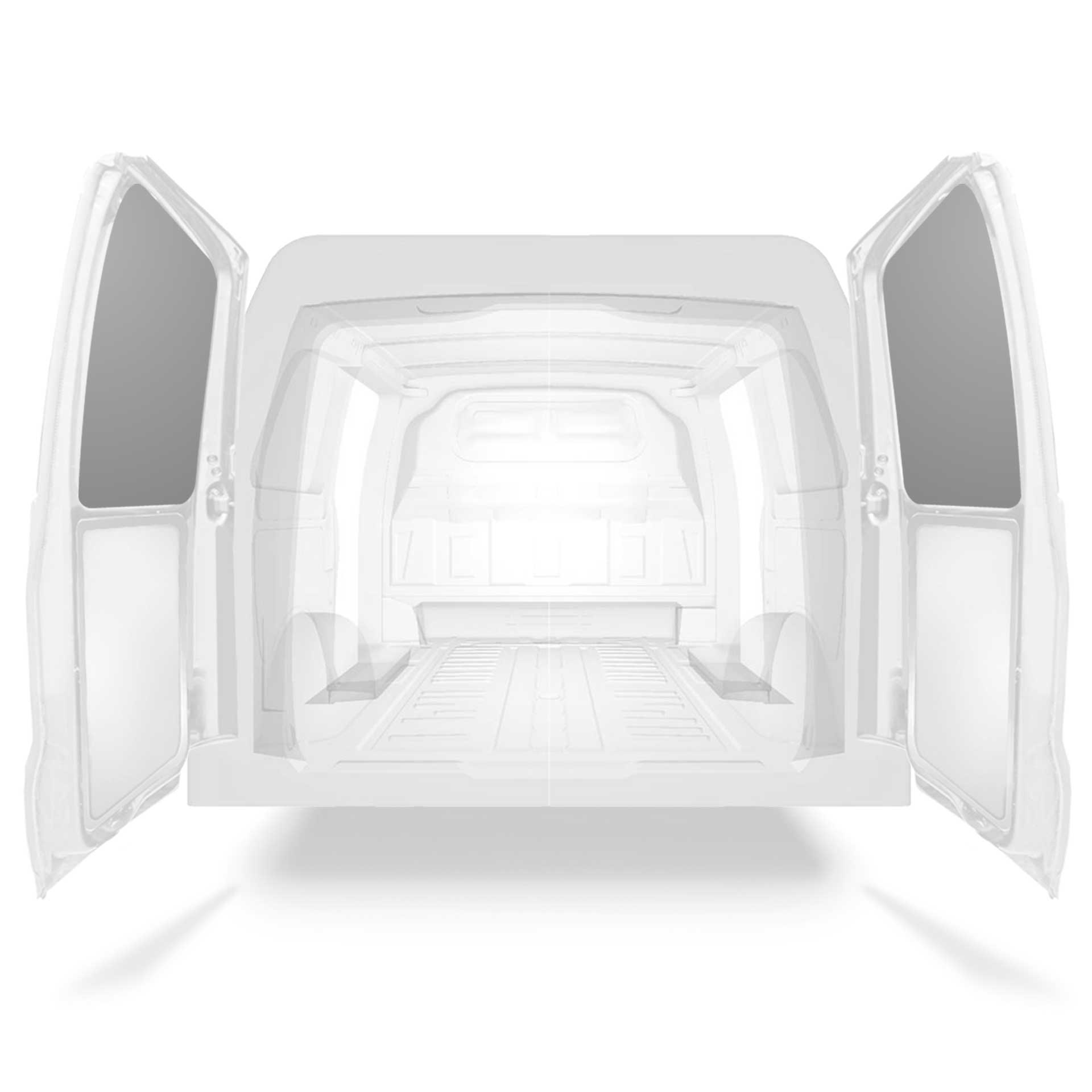 Diese zugeschnittenen Hecktürverkleidungen wurden so konzipiert, dass sie genau in die oberen Abschnitte der Doppeltüren des Fahrzeugs passen.