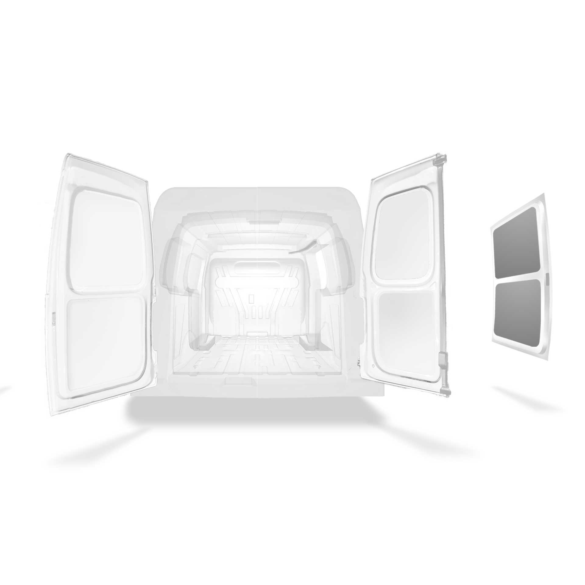 Die Seitentür-Innenverkleidung eignet sich für einen Ford Transit Connect, bei dem sich die Seitentür rechts befindet. Alle für die Verkleidung verwendeten Materialien sind leicht zu reinigen und schaffen eine helle Arbeitsumgebung.