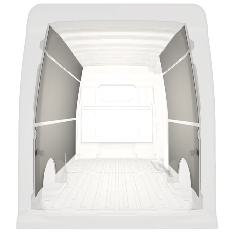 Verkleidungen für Seiten-, Hecktür und Dachhimmel sind separat erhältlich. Das Installationsmaterial wird ebenfalls separat geliefert.