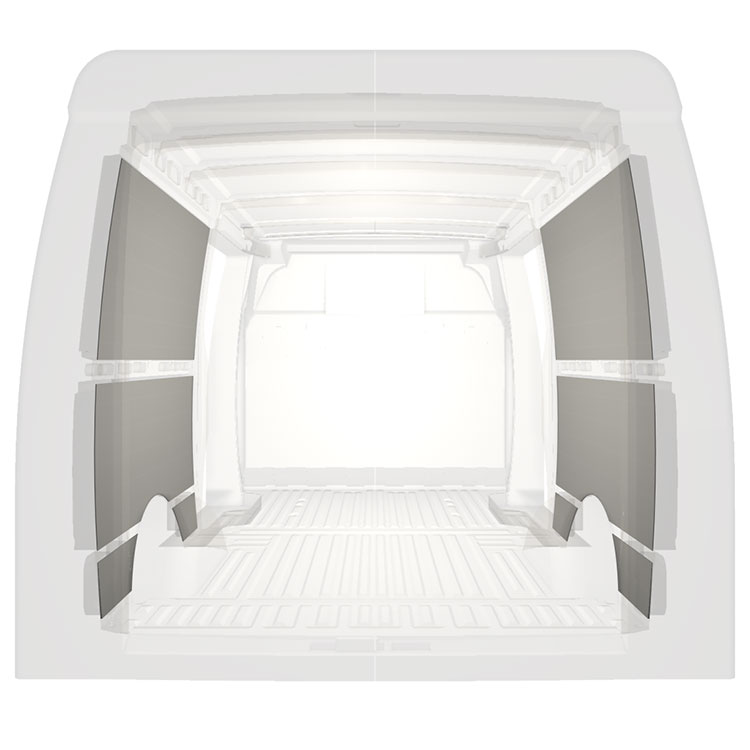 Verkleidungen für Seiten-, Hecktür und Dachhimmel sind separat erhältlich. Das Installationsmaterial wird ebenfalls separat geliefert.