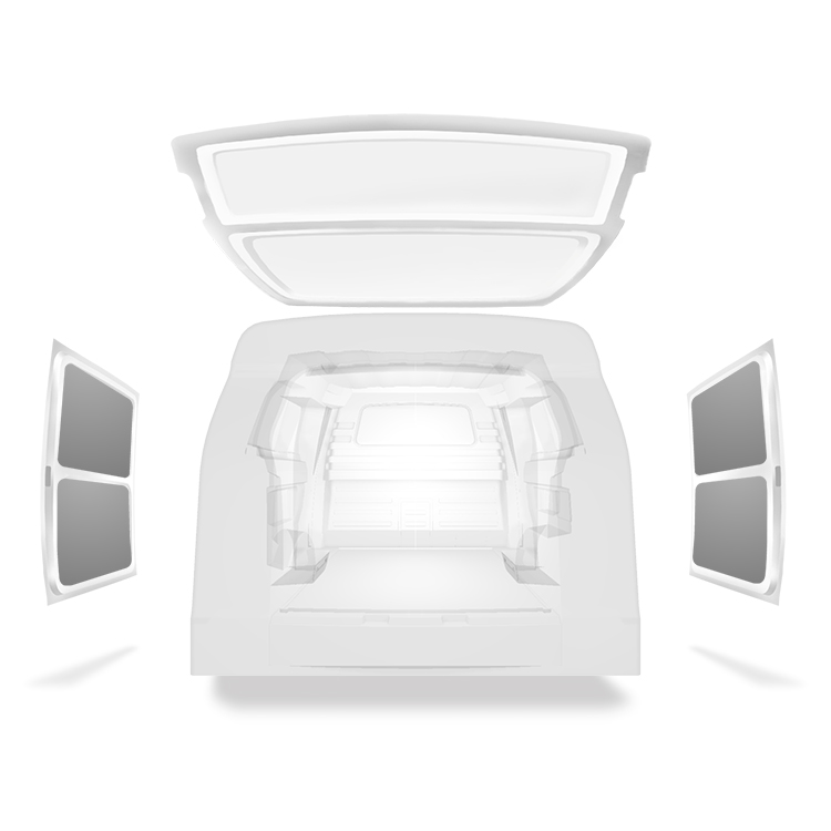 Für weitere Umbauten sind Verkleidungen für Innenwände, Hecktüren und Dachhimmel von Fahrzeugen separat erhältlich.