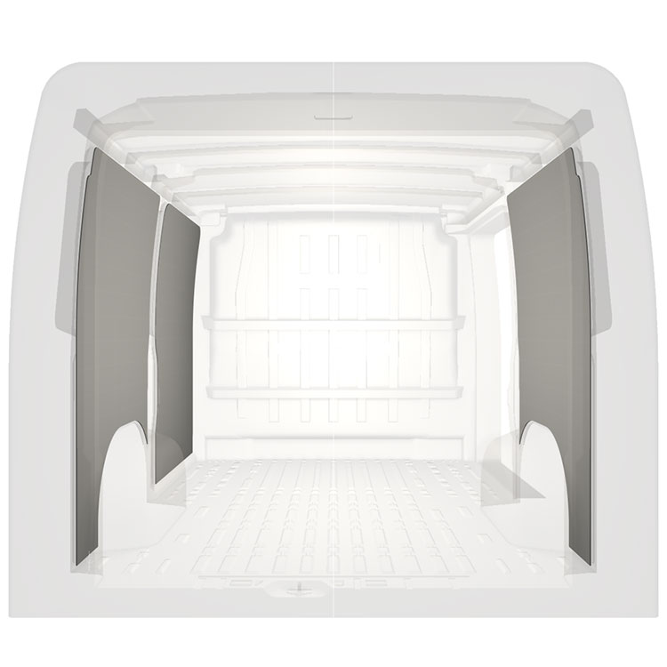 Leichte Vollverkleidung für die Innenwände eines Citroën Jumper / Peugeot Boxer / Fiat Ducato mit Seitentür rechts.Die Verkleidungen schaffen ein helles und angenehmes Arbeitsumfeld und sind leicht zu reinigen.