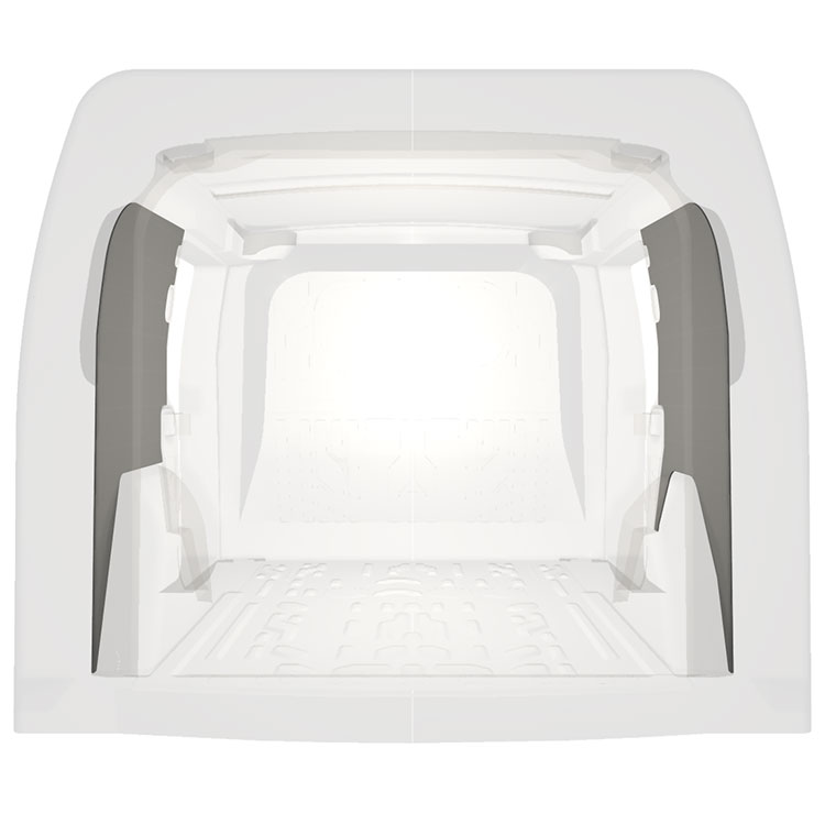 Leichte Vollverkleidung für die Innenwände eines Opel Combo / Fiat Doblò mit beidseitigen Seitentüren. Die Verkleidungen schaffen ein helles und angenehmes Arbeitsumfeld und sind leicht zu reinigen.