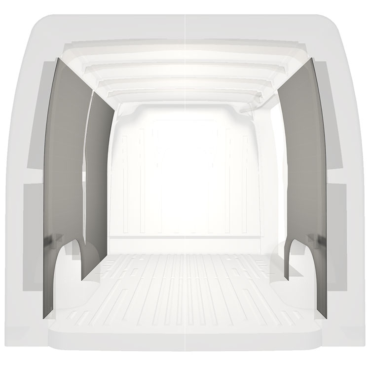 Verkleidungen für Seiten-, Hecktür und Dachhimmel sind separat erhältlich. Das Installationsmaterial wird ebenfalls separat geliefert.