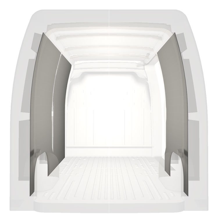 Verkleidungen für Seiten-, Hecktür und Dachhimmel sind separat erhältlich. Das Installationsmaterial wird ebenfalls separat geliefert.
