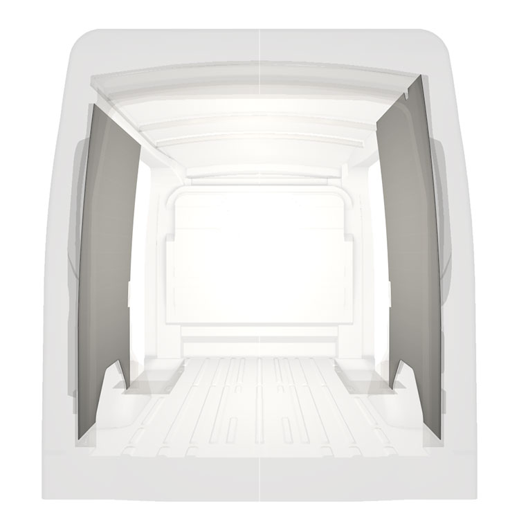Verkleidungen für Seiten-, Hecktür und Dachhimmel sind separat erhältlich. Das Installationsmaterial wird ebenfalls separat geliefert.