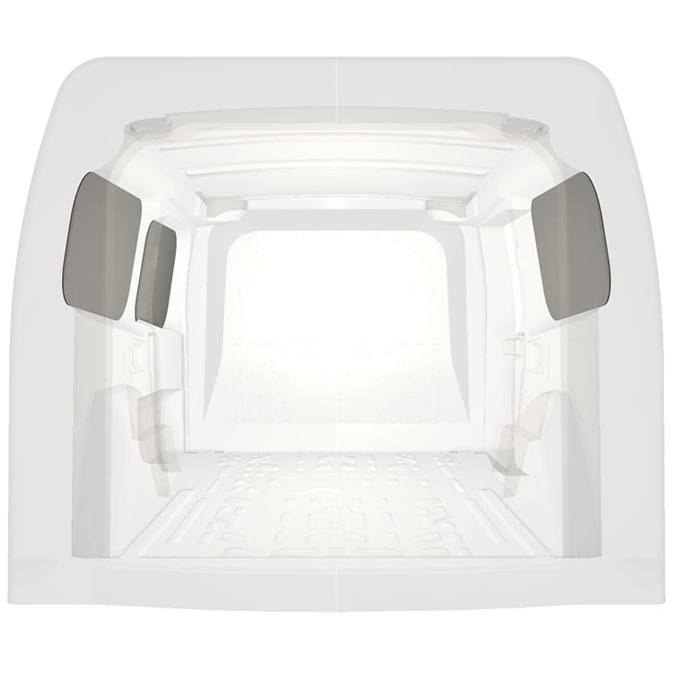 Verkleidungen für Seiten-, Hecktür und Dachhimmel sind separat erhältlich. Das Installationsmaterial wird ebenfalls separat geliefert.
