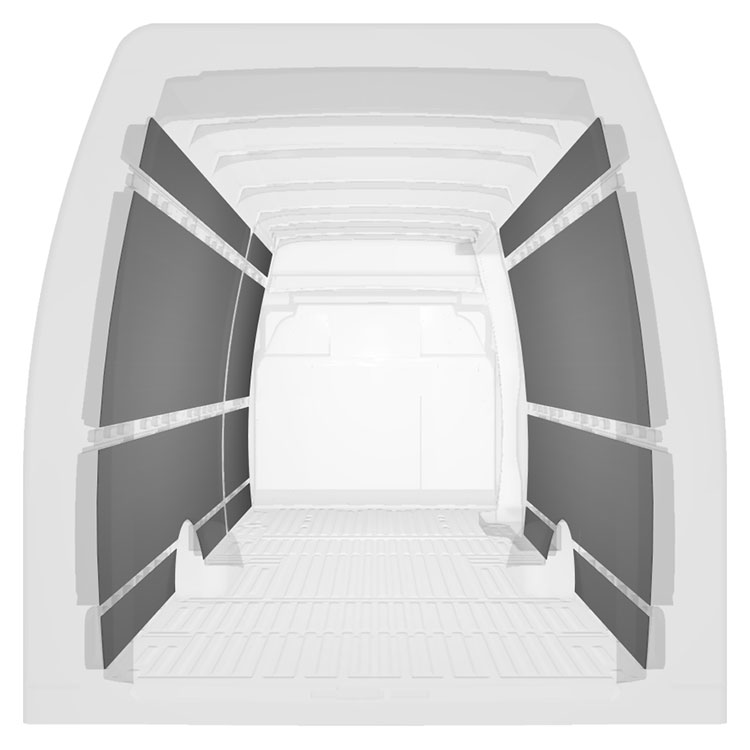 Verkleidungen für Seiten-, Hecktür und Dachhimmel sind separat erhältlich. Das Installationsmaterial wird ebenfalls separat geliefert.