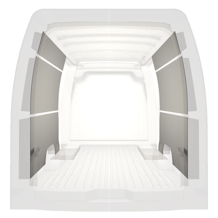 Verkleidungen für Seiten-, Hecktür und Dachhimmel sind separat erhältlich. Das Installationsmaterial wird ebenfalls separat geliefert.