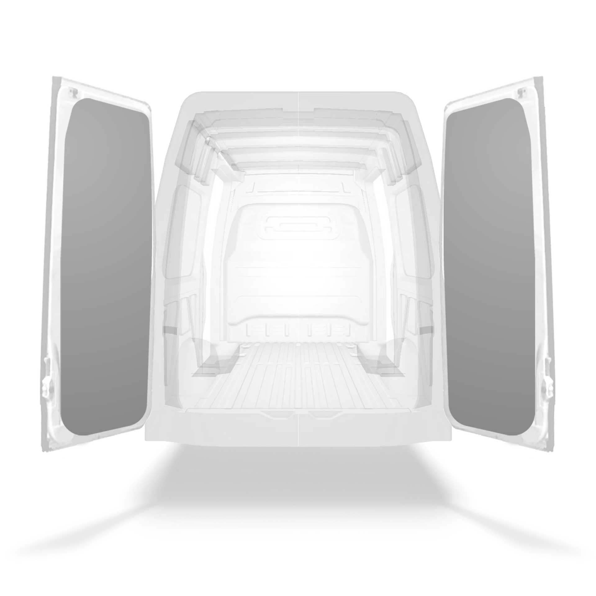 Leichte Vollverkleidung für die Hecktür eines Mercedes Sprinter mit Doppeltüren. Die Türverkleidung erweckt einen professionellen Eindruck, schützt Ihr Fahrzeug und ist leicht zu reinigen.