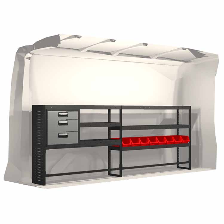 Dieses Einrichtungssystem wurde entworfen, um optimale Passgenauigkeit und bestmögliche Funktionalität und Sicherheit zu gewährleisten. Es ist für den professionellen Gebrauch entwickelt worden, ist flexibel und zur Anwendung in verschiedenen Geschäftsbereichen bestimmt. Universal- und Bodenwinkel sind enthalten.