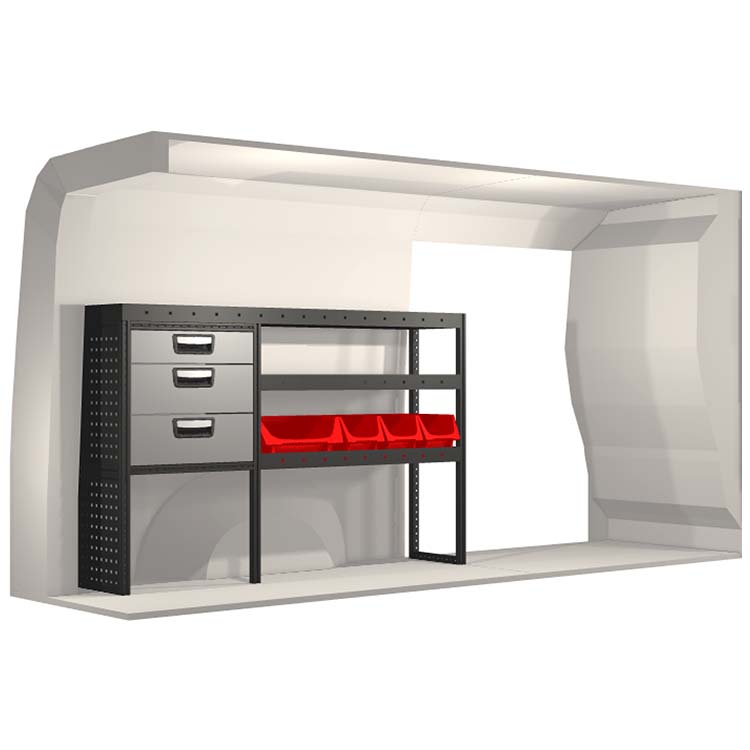 Dieses Einrichtungssystem wurde entworfen, um optimale Passgenauigkeit und bestmögliche Funktionalität und Sicherheit zu gewährleisten. Es ist für den professionellen Gebrauch entwickelt worden, ist flexibel und zur Anwendung in verschiedenen Geschäftsbereichen bestimmt. Universal- und Bodenwinkel sind enthalten.