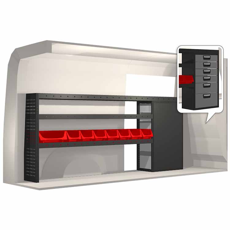 Dieses Einrichtungssystem wurde entworfen, um optimale Passgenauigkeit und bestmögliche Funktionalität und Sicherheit zu gewährleisten. Es ist für den professionellen Gebrauch entwickelt worden, ist flexibel und zur Anwendung in verschiedenen Geschäftsbereichen bestimmt. Universal- und Bodenwinkel sind enthalten.