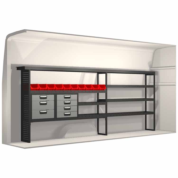 Dieses Einrichtungssystem wurde entworfen, um optimale Passgenauigkeit und bestmögliche Funktionalität und Sicherheit zu gewährleisten. Es ist für den professionellen Gebrauch entwickelt worden, ist flexibel und zur Anwendung in verschiedenen Geschäftsbereichen bestimmt. Universal- und Bodenwinkel sind enthalten.