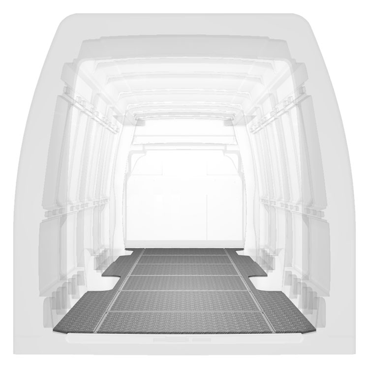 Leichte und robuste Fahrzeugböden mit Querschienen für einen Iveco Daily werden mit einem rutschfesten Trittblech aus Aluminium und Schienen (längs und quer) für eine schnelle und sichere Montage von Regalsystemen und anderem Zubehör geliefert.