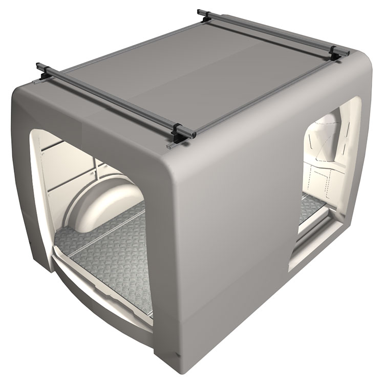 Für ein minimales Gewicht sind die Traverse aus hochfestem Aluminium gefertigt. Alle Halterungen bestehen aus pulverbeschichtetem verzinktem Stahl und die Verarbeitungsdetails wie Endkappen sind aus Kunststoff. Die T-Schienen (M8) des Dachträgers können für die schnelle und einfache Montage von Leuchtenhalterungen, Lastanschlägen, Spanngurten und anderen Zubehörteilen verwendet werden.