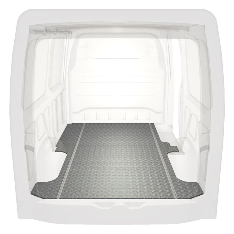 Leichte und robuste Standard-Fahrzeugböden für einen Mercedes Sprinter werden mit einem rutschfesten Trittblech aus Aluminium und Schienen (längs) für eine schnelle und sichere Montage von Regalsystemen und anderem Zubehör geliefert.