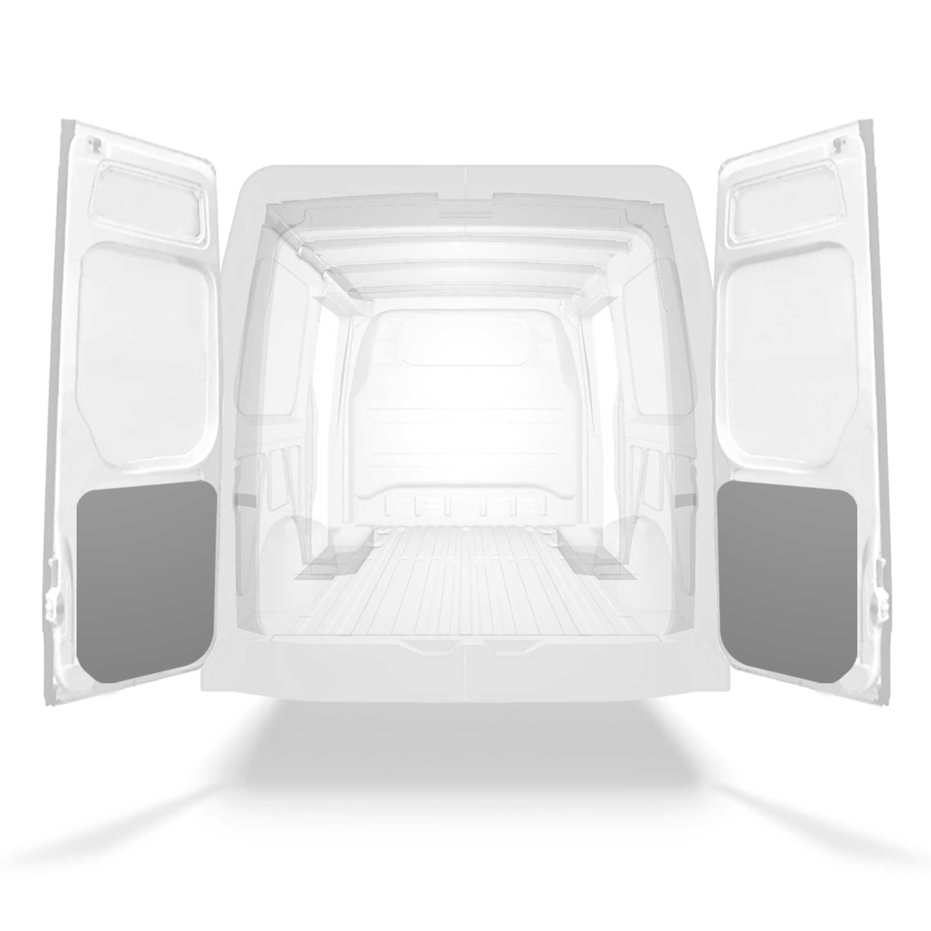 Leichte Verkleidung für den unteren Teil der Hecktür eines Mercedes Sprinter mit Doppeltüren. Die Türverkleidung erweckt einen professionellen Eindruck, schützt Ihr Fahrzeug und ist leicht zu reinigen.