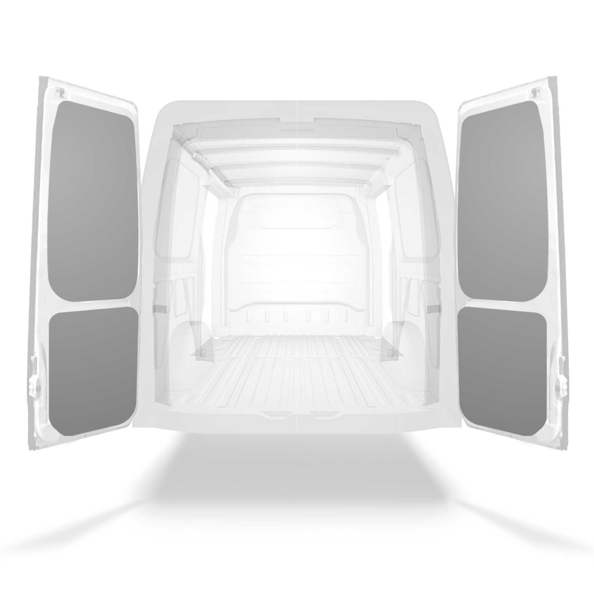 Leichte Innenverkleidung für die Hecktür eines Mercedes Sprinter mit Doppeltüren. Die Türverkleidung erweckt einen professionellen Eindruck, schützt Ihr Fahrzeug und ist leicht zu reinigen.