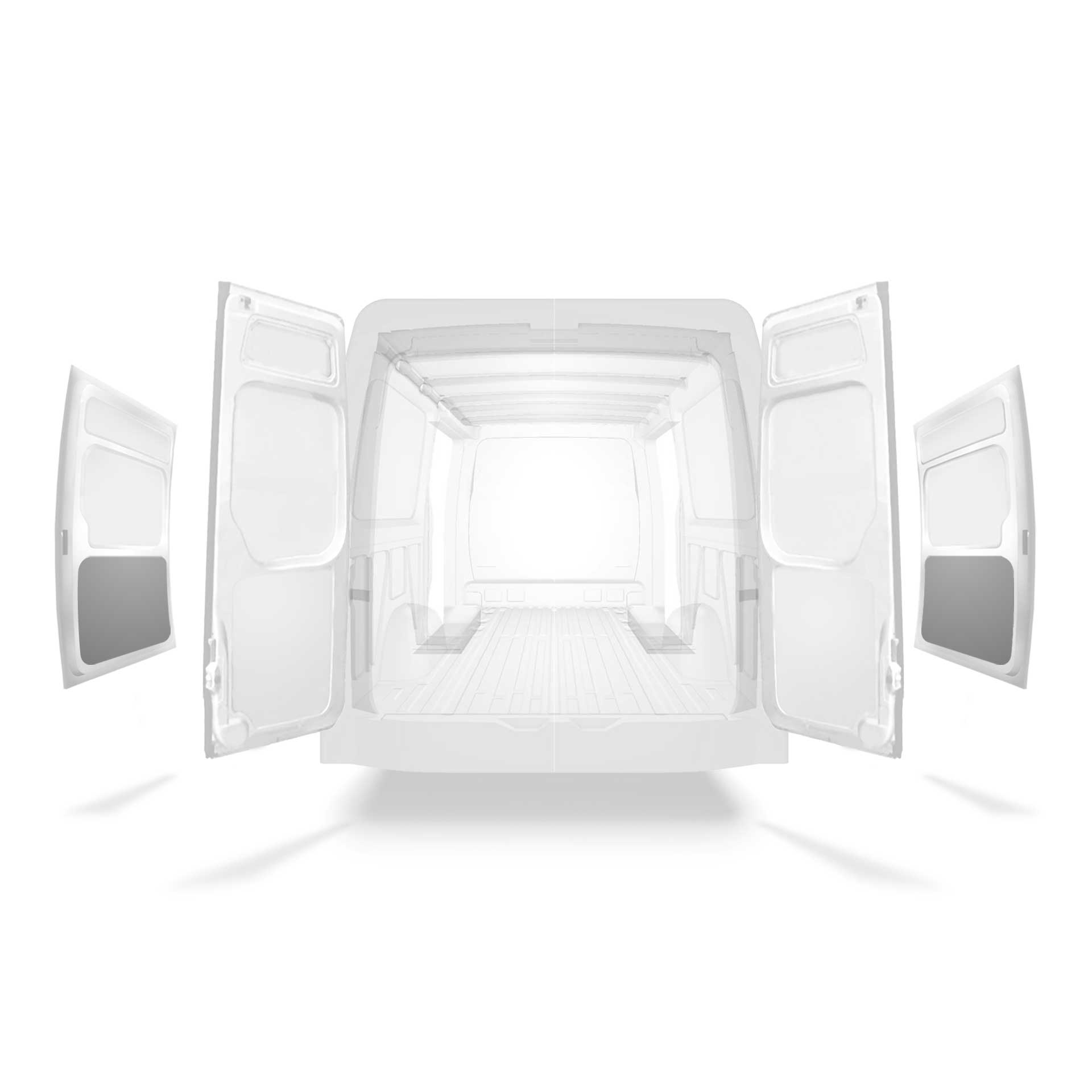 Leichte Verkleidung für den unteren Teil der Seitentür eines Mercedes Sprinter mit zwei Seitentüren. Die Verkleidung verringert Verschleiß und hilft, den Restwert Ihres Fahrzeugs zu erhalten.